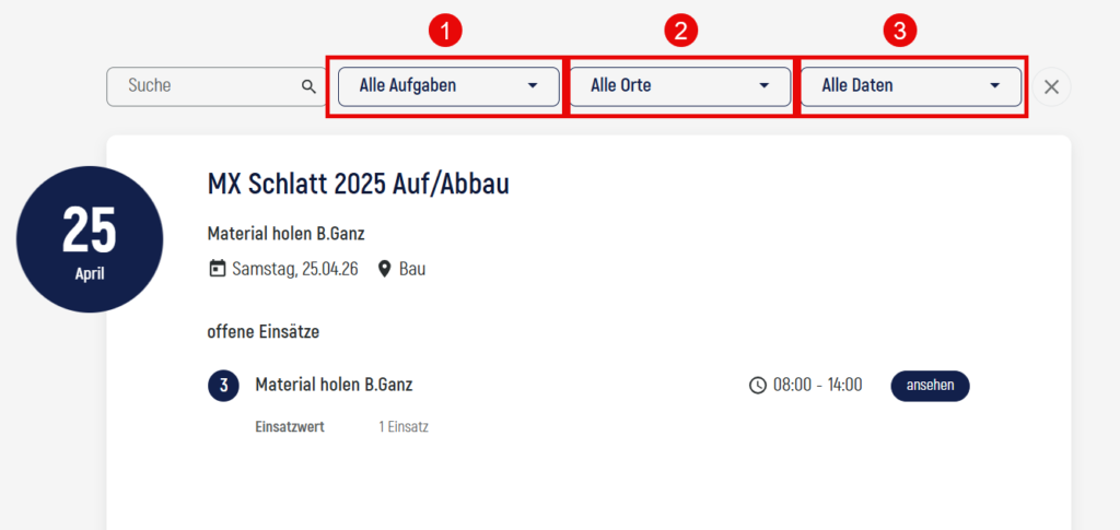 Um die richtige Schicht für dich schnell zu finden, haben wir 3 Filter, mit denen Ihr schnell zu den richtigen Schichten kommt.